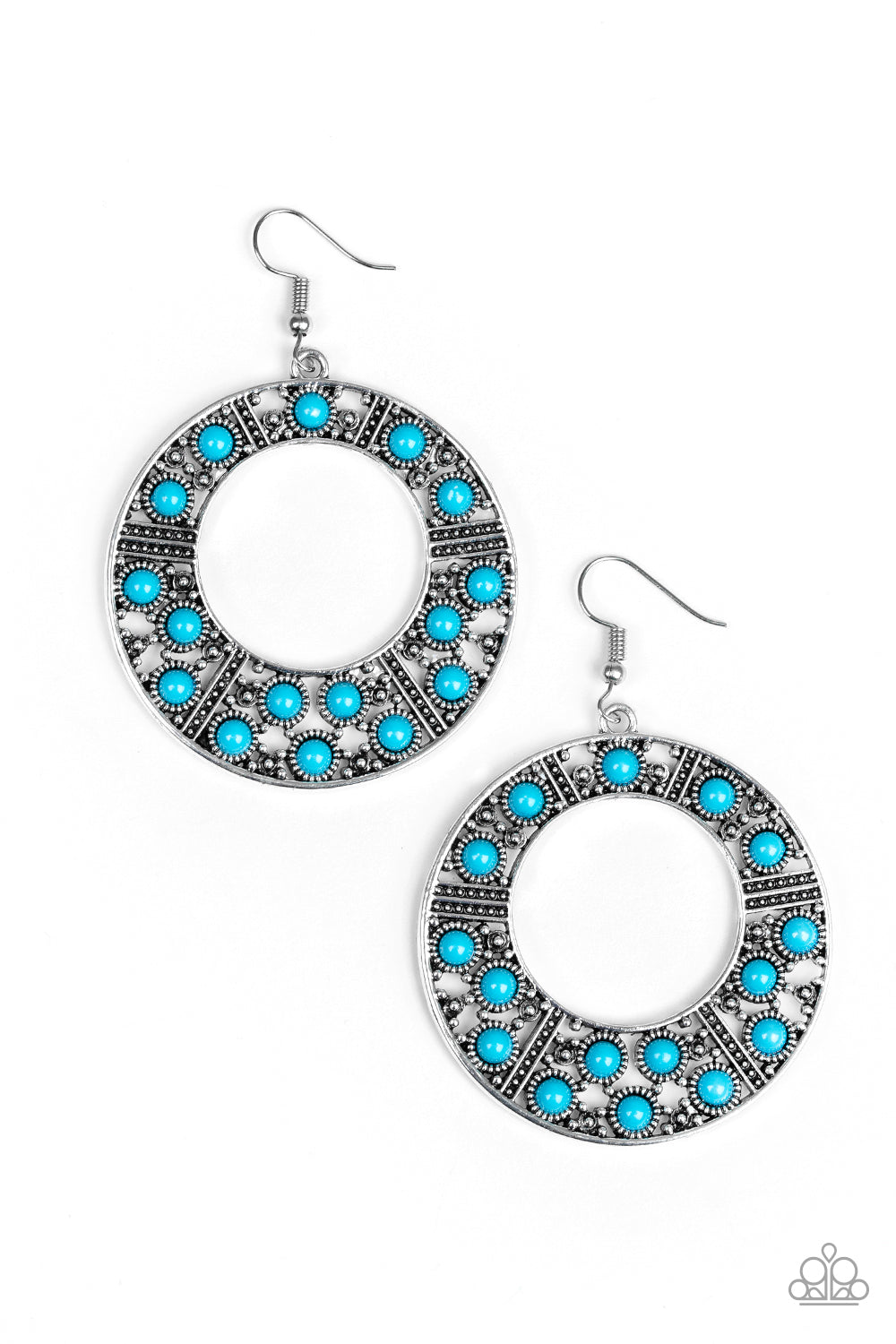 y silver hoop radiating with dainty silver studs, creating a whimsical frame. Earring attaches to a standard fishhook fitting.
